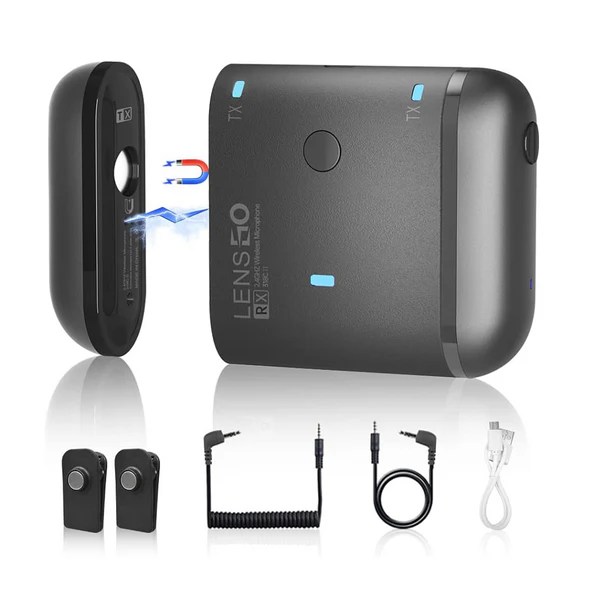 - 2.4 GHz Wireless Transmission Tech: LENSGO wireless lavalier microphone systems adopt stable 2.4 ,GHz wireless transmission, easy to achieve 330 ft long-distance wireless audio. 360° omnidirectional pickup with double click reverb function restores high fidelity sound quality. 35 Hz~20 KHz ultra-wide radio frequency, capture more vocals details, and reproduce your voice accurately and clearly